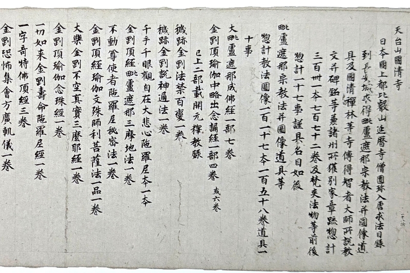 中国・唐に渡った延暦寺の智証大師円珍が長安で入手した密教経典などのリスト。経典類341本772巻は帰国後に成果物として国などに提出された。写経生によって書かれ、円珍が最後にサインをしている。